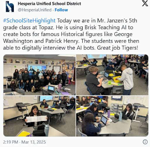 The Hesperia Unified School District would like to thank Mr. Robert Stepanian for taking the time to interview and inspiring today's students for tomorrow's world.